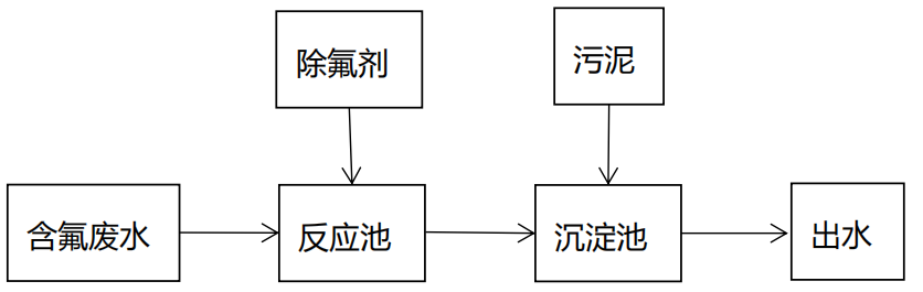 先將除氟劑直接投加到待處理含氟廢水中,依實(shí)際情況充分攪拌反應15分鐘后,配合投加聚丙烯酰胺(PAM)將沉淀物絮凝。具體投加量與實(shí)際廢水中氟離子含量及水質(zhì)情況有關(guān)。