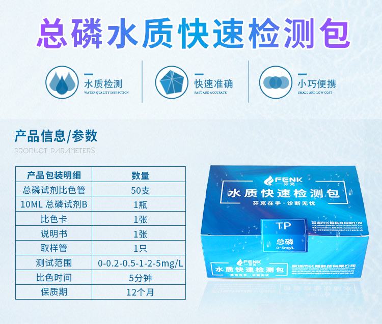 3.水體中磷主要以較穩定的磷酸根離子形式存在,故本產(chǎn)品以測定磷酸根離子來(lái)判斷水中總磷含量。