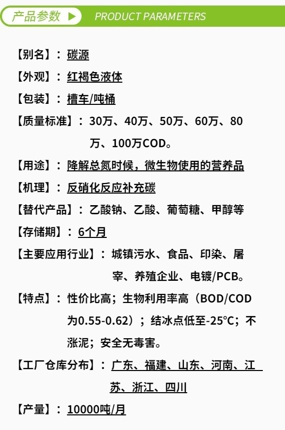 【有效COD含量高】針對反硝化細菌專(zhuān)一定制,性?xún)r(jià)比普遍優(yōu)于甲醇、乙醇、淀粉、葡萄糖、乙酸及乙酸鈉等傳統碳源;