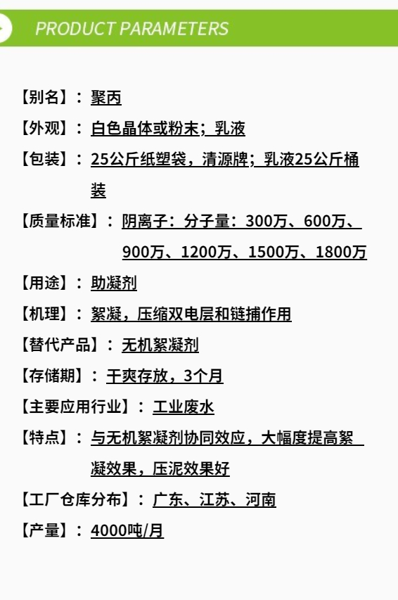 一、陰離子聚丙烯酰胺性能
