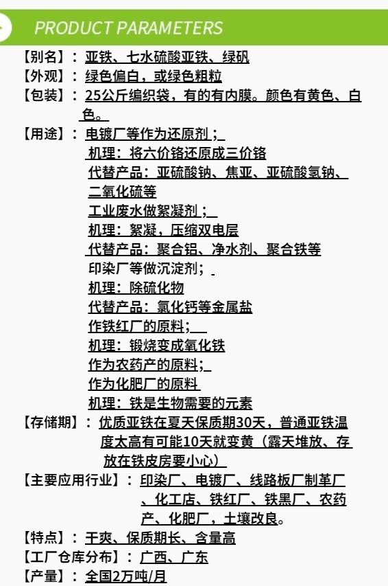 烘干硫酸亞鐵項目指標