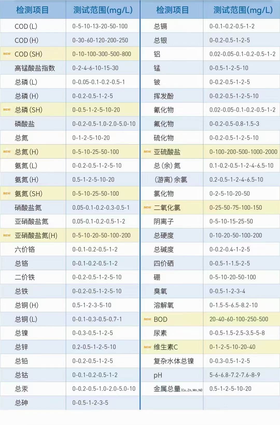 ④、種類(lèi)齊全:65款常見(jiàn)水質(zhì)污染物等, 檢測項目多, 檢測范圍廣;