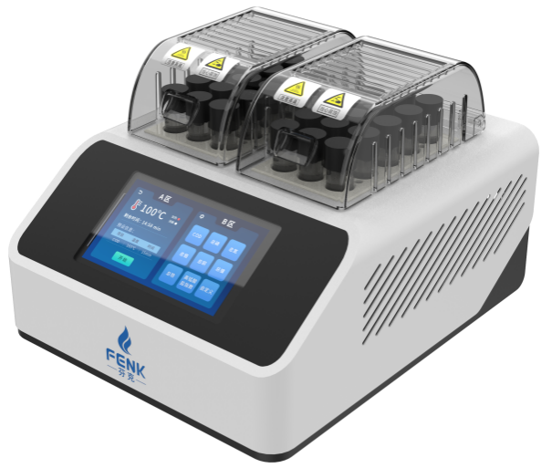 1. 獨立雙溫控:儀器設有兩個(gè)溫區,每個(gè)溫區擁有15個(gè)消解孔位,并且因為每個(gè)溫度 區是通過(guò)獨立控制面板進(jìn)行溫度控制,兩個(gè)溫度區工作時(shí)互不影響,所以可以同時(shí)對兩種不同溫度的水樣同時(shí)進(jìn)行消解。