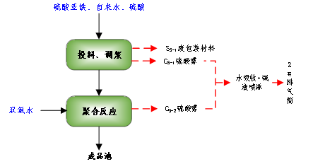 圖1-1聚合硫酸鐵生產(chǎn)工藝流程及產(chǎn)污節點(diǎn)圖