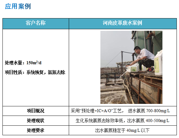 以上皮革廢水的特點(diǎn)使得皮革廢水的處理難度較大,其難度在難度分級中處于中上等。企業(yè)尤其是在氨氮、總氮減排方面面臨巨大的壓力。針對這一問(wèn)題,目前最為安全有效、長(cháng)期穩定的方式就是對系統進(jìn)行生物強化。研究顯示,日常運行過(guò)程中,定期投加菌劑,可以更好的提高系統的耐沖擊能力,但目前大多數廠(chǎng)家,通常是在系統受到?jīng)_擊時(shí)選擇投加大量菌劑,無(wú)論是哪種情況,選對菌劑很重要。庫巴魯®氨氮激活菌201 ,一款氨氮去除率高達99.9%的硝化細菌產(chǎn)品,有效提高系統的硝化能力,增加生化系統抗沖擊性,3天見(jiàn)效,15達標。小小的細菌,大大的能量!