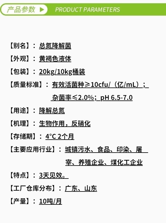 總氮激活菌101是針對生化系統中高濃度總氮廢水而專(zhuān)門(mén)研發(fā)的高效反硝化菌,能高效降解廢水中的硝態(tài)氮、亞硝態(tài)氮等氮化合物,可在各種復雜廢水中與其它產(chǎn)品配合使用。